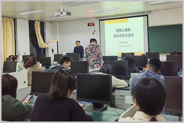 为了更好地提早谋划与组织开展2022年校园心理剧大赛活动,帮助学生掌握剧本创作的技巧和增进现场排演的效果,卫生管理学院于3月14日举办校园心理剧剧本创作交流会。学院党总支副书记史永庆主持会议并担任主讲人,年级辅导员和各心理剧参赛团队的主创人员参会。