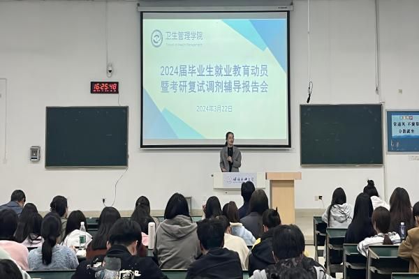为深入贯彻落实全国、全省和学校关于做好高校毕业生就业工作的系列决策部署,夯实就业指导与服务举措,抢抓毕业生就业工作黄金期,帮助毕业生充分了解当前就业形势和激发内生动能,实现更高质量、充分就业,卫生管理学院近日召开2024届毕业生就业教育动员暨考研复试调剂辅导专题会。学院党总支书记史永庆、院长高琴、副院长王辅之出席此次会议,年级辅导员及2024届全体毕业生参会。