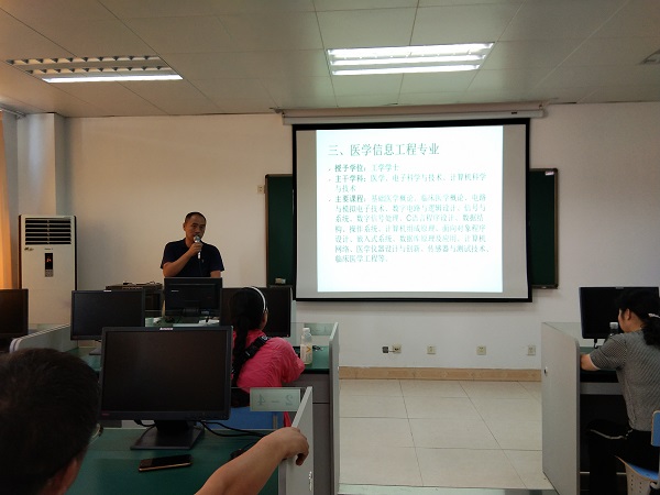 随后杨枢教授和王辅之副教授为各位家长介绍了医学信息工程、信息管理与信息系统和健康服务与管理专业的培养目标、培养特色、主干学科,并对家长们主要关心的专业就业方向做了详细介绍。