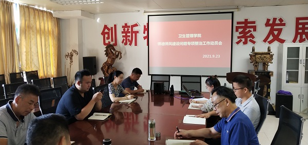 为进一步加强学院师德师风建设,提高教师思想政治素质和职业道德水平,9月23日上午,卫生管理学院在会议室召开了师德师风专项整治工作动员会,学院总支委员、各支部书记、各部门负责人、学生年级参加了会议,会议由学院总支书记、院长陈兴智主持。