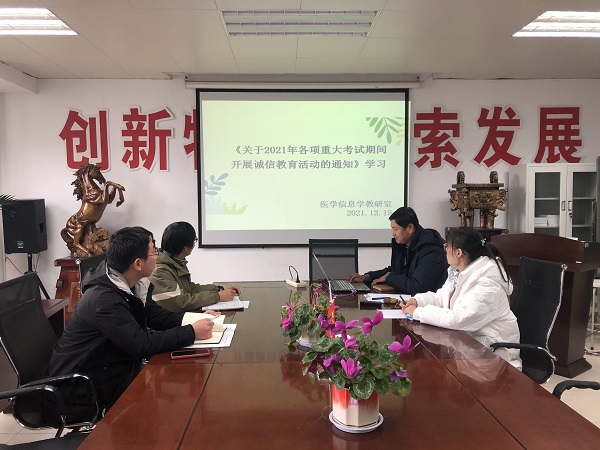 各教研室通过举行教学例会,对国家教育考试各项政策规定和会议精神进行专项学习,引导全院教师加强自我思想品德修养,增强职业道德素养,要求全院教师以身作责,恪守职责,杜绝与社会考试培训机构勾连,用实际行动维护公平公正的考试秩序和安全和谐的考场环境。
