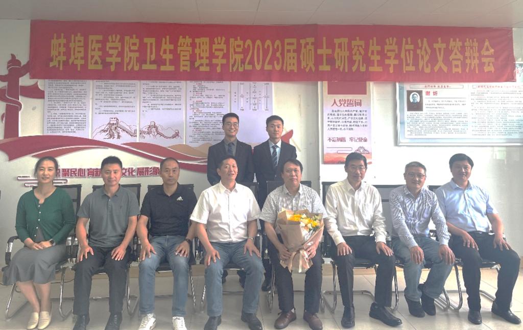 5月28日上午,卫生管理学院在学院会议室开展了2023届医学信息学硕士研究生学位论文答辩工作。本次答辩邀请中南大学胡德华教授作为答辩委员会主席,答辩委员会专家由蚌埠医学院临床医学院院长陈卫东教授,基础医学院院长陈兴智教授,公共卫生学院贾贤杰教授,卫生管理学院杨枢教授、刘玉文教授组成。两名研究生参加答辩。全体研究生和部分教师旁听了答辩会。