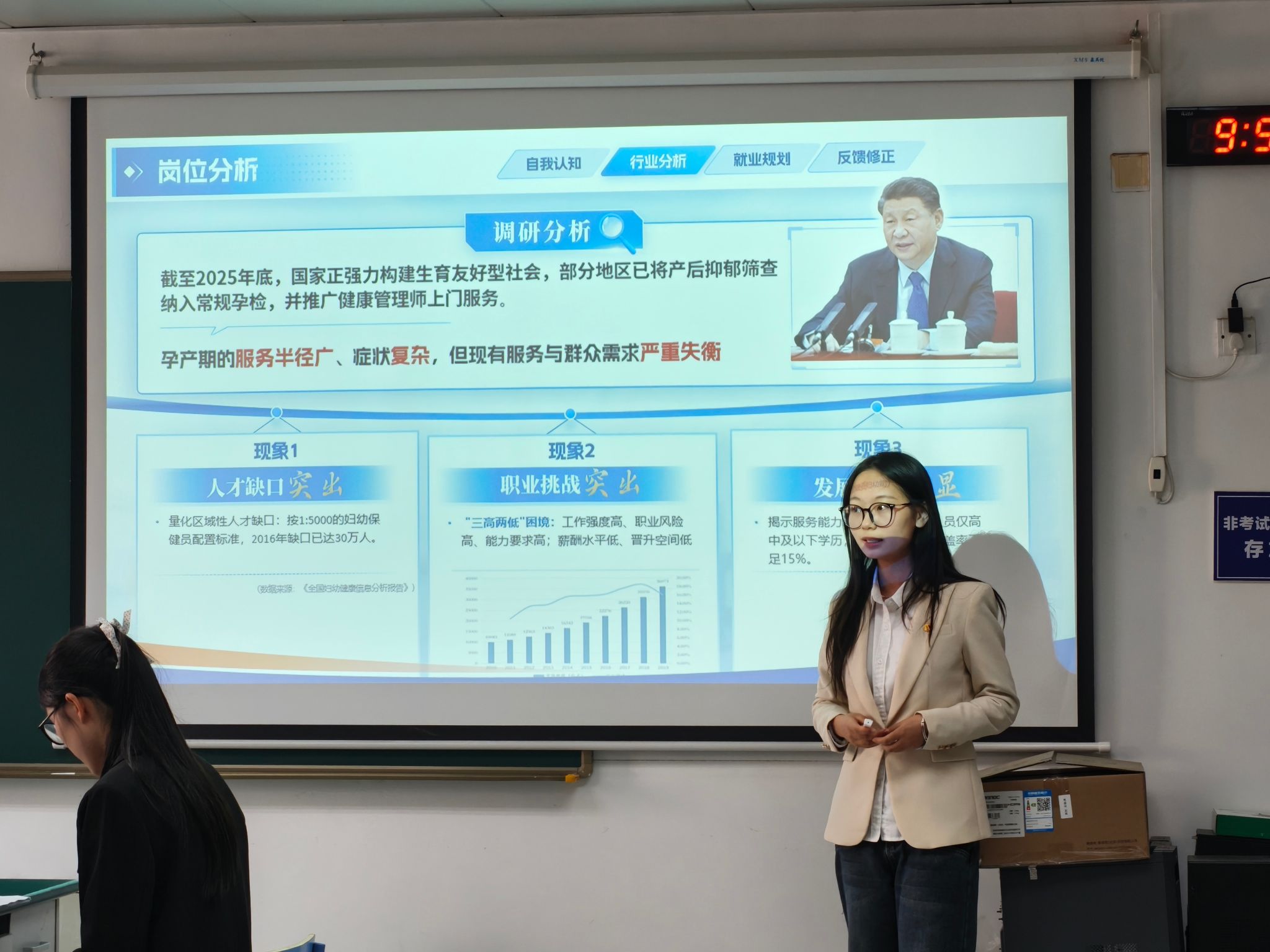 本次大赛设置成长赛道和就业赛道,经过前期严格选拔、层层筛选,共有11名优秀选手脱颖而出,入围院级初赛。初赛现场,选手们通过PPT展示,围绕职业目标定位、个人综合素质、专业能力储备、发展路径规划等内容展开阐述,同时结合就业市场需求,分析行业发展趋势与自身适配性,展现出清晰的职业规划思路与积极向上的精神风貌。