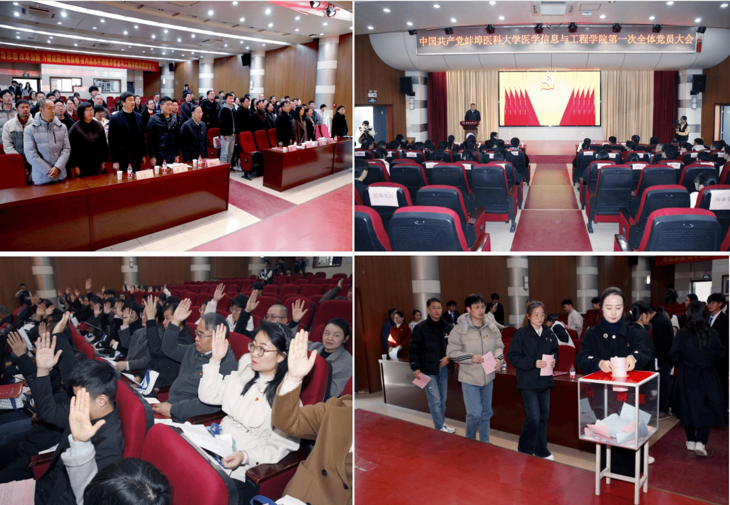 报告号召全院师生员工要高举习近平新时代中国特色社会主义思想伟大旗帜,以永不懈怠的精神状态、一往无前的奋斗姿态,解放思想闯新路、改革创新破难题、主动担当抓落实、奋发有为开新局,把第一次全体党员大会确定的目标转化为实际行动,把规划的蓝图变为美好现实,为谱写学院高质量发展新篇章、培养更多创新复合型医学信息与工程人才而努力奋斗!