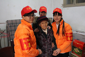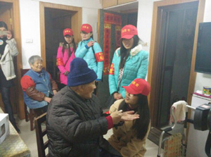 在社区工作人员的带领下,学生志愿者还走到抗战老兵和孤寡老人的家里,陪老人们聊聊天,帮忙打扫卫生,并为老人们送上牛奶等慰问品,让老人