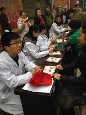 我系依托附院人才资源优势,结合航华社区居民实际需要,为社区居民免费测量血压、听心脏,并向社区居民赠送了肿瘤、高血压、糖尿病等常见病的防治读本。