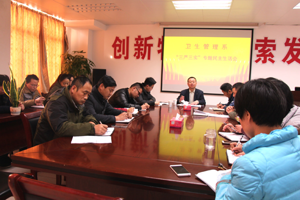 根据学校《关于开好“三严三实”专题民主生活会的通知》(党组﹝2015﹞26号)文件精神,2016年1月7日上午,卫生管理系在系会议室组织召开了“三严三实”专题民主生活会。校党委齐玉龙书记和组织部相关同志到会并监督指导。卫生管理系全体教职工参加了会议。