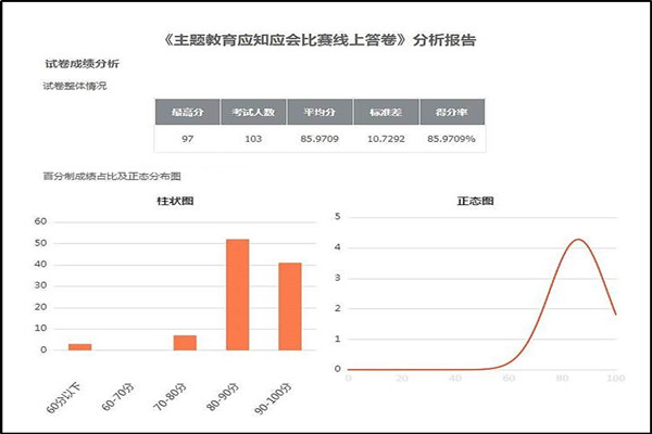 自主题教育开展以来,卫生管理学院党总支坚持不懈用习近平新时代中国特色社会主义思想凝心铸魂,努力以实的作风、实的举措、实的成效,不断推进主题教育的深入开展。本次主题教育应知应会知识竞赛的成功举办,有效调动与激发了学生群体参与主题教育的积极性与主动性,检验了参赛学生对党的创新理论的理解和掌握情况,营造了深学细悟、比学赶超的良好氛围,达到了以赛促学、以学促知、以知促行的良好成效。