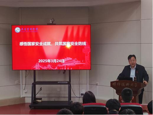 为深入贯彻落实总体国家安全观,增强大学生的国家安全意识,3月24日上午,校关工委成员、马克思主义学院原院长武余芹为卫生管理学院2022级全体学生带来一场关于国家安全的专题讲座,学院党总支副书记贾先果主持了讲座。